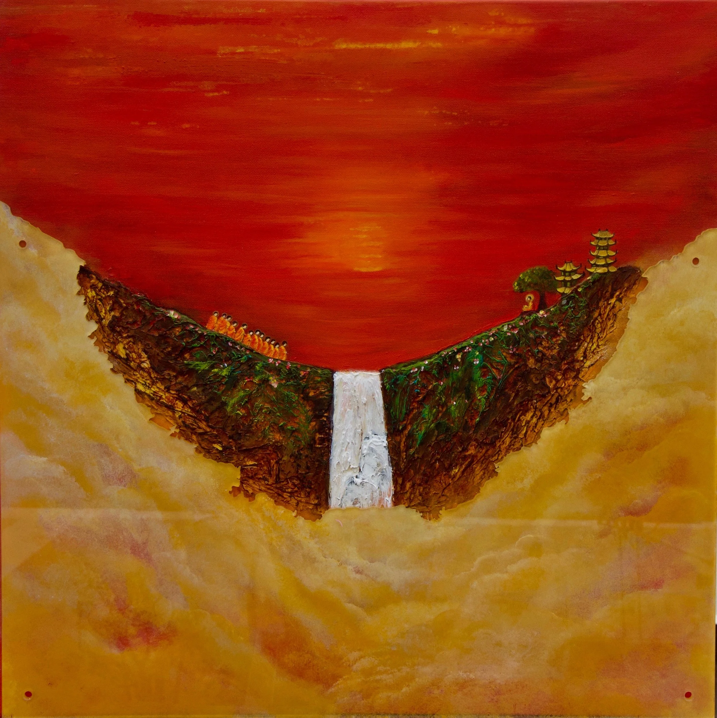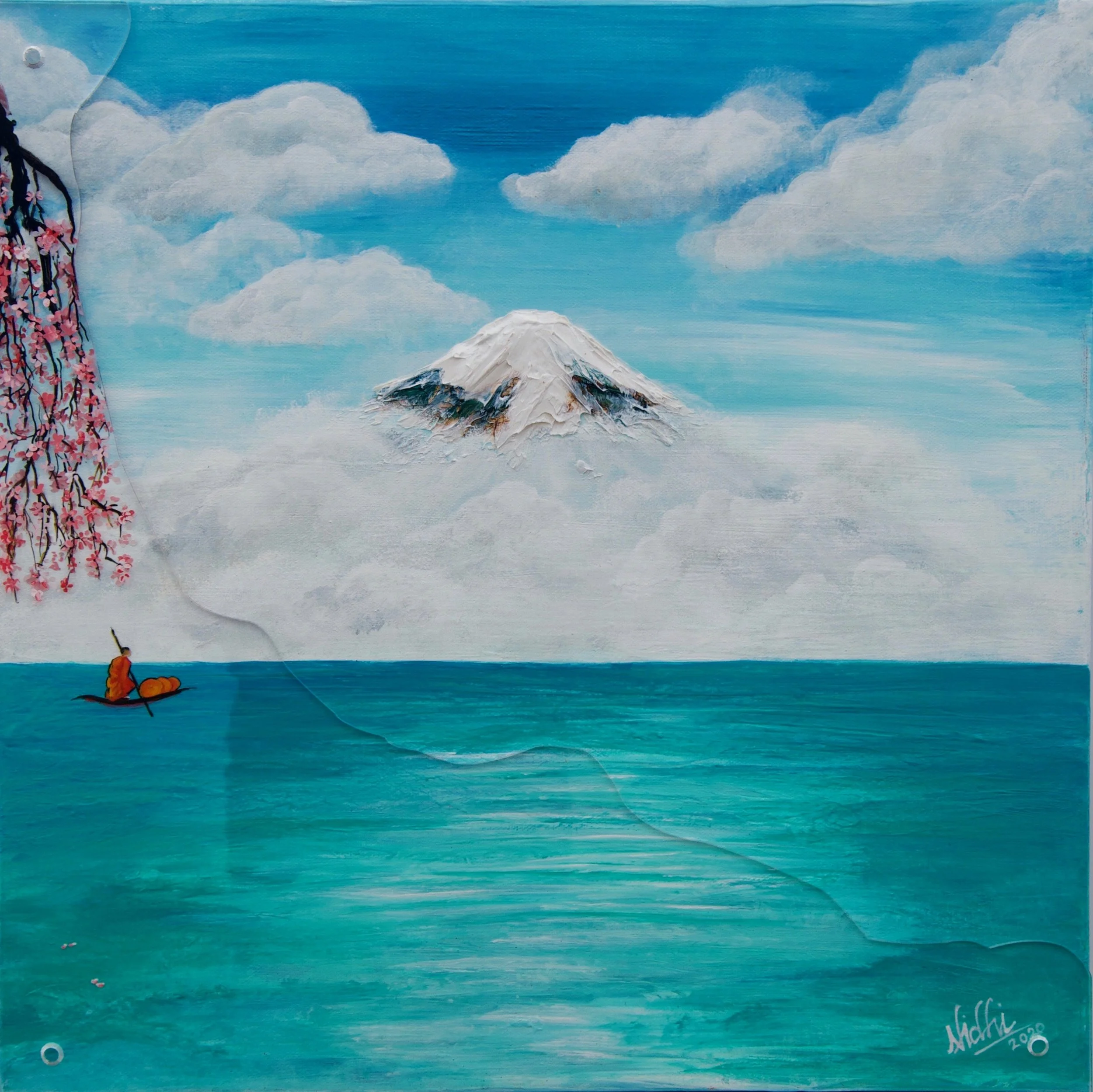 Collective Journeys” transpired during the covid lockdown. Nidhi’s work stretched beyond the canvas as she sculpts her artful journeys into contraventions of wood, resin, acrylics, cement, and plexiglass, responsive to the emotions of the masses at large. We all are seeking collective healing and a path to freedom. Her works are invitation to go within, through the sensorial and tactile touch, but untouched by the outside, confined, in a space of solace and sanctuary.